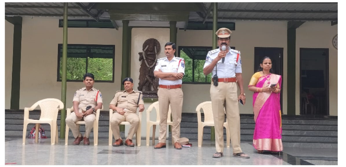 The necessity of knowing and managing one’s own road safety for a child is increasing. KPHB traffic police ACP Venkataiah, and CI Venkat counseled students about Road safety rules.