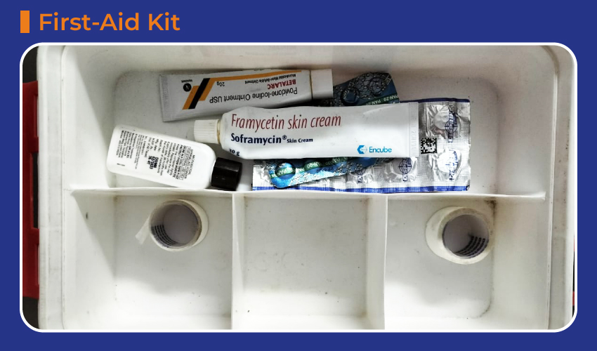 MNR Schools maintain basic medicine/first aid kits and display emergency medical care numbers including ambulance services.